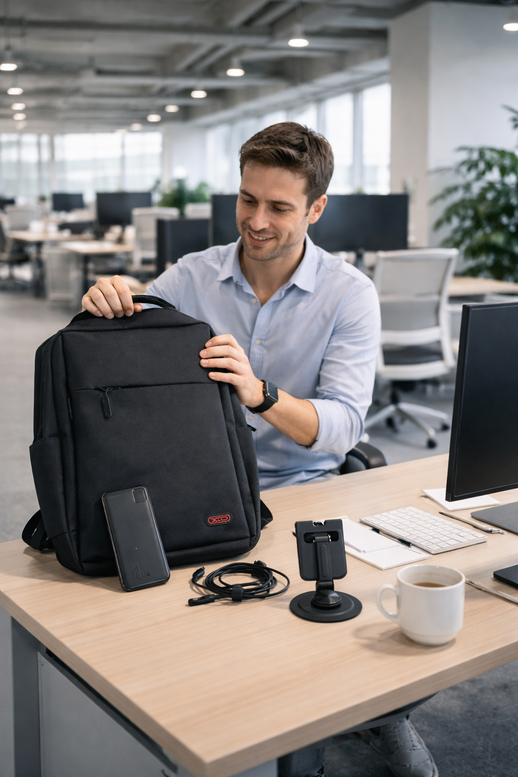 Zestaw do zadań specjalnych. Polecany dla tych, którzy w pracy potrzebują mobilności i nowoczesnych technologii. Idealnie sprawdzi się dla programistów, grafików oraz osób pracujących w trybie hybrydowym. Minimalistyczna, czarna estetyka podkreśla technologiczny vibe i profesjonalizm.
