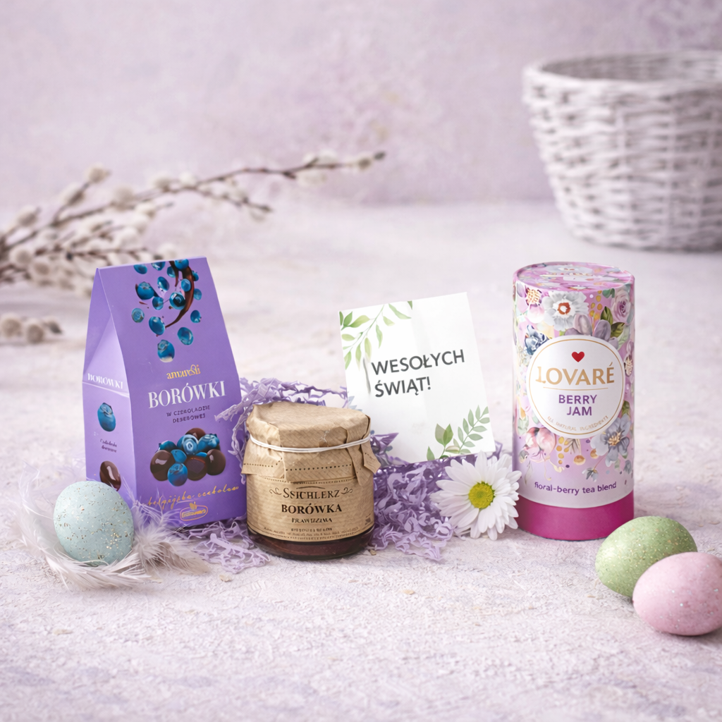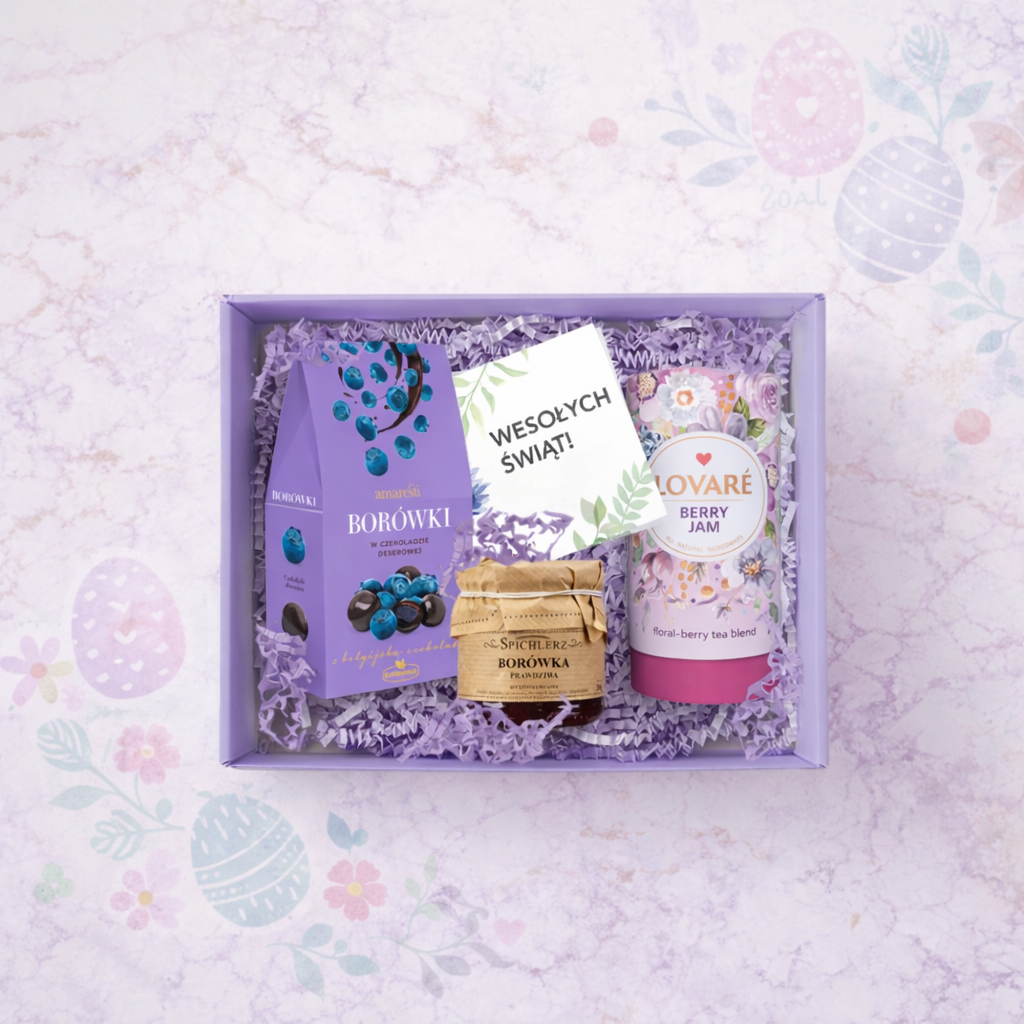 Stworzony z myślą o firmach, które chcą budować relacje i wyróżnić się dbałością o detale. Idealnie sprawdzi się jako upominek dla pracowników, klientów oraz partnerów biznesowych – zarówno przy okazji świąt, jak i w codziennej komunikacji marki. To uniwersalny prezent firmowy, który buduje relacje, wzmacnia wizerunek marki i sprawia realną przyjemność obdarowanym. W estetycznym, jasnym boxie znajdują się starannie dobrane produkty: wyjątkowe słodycze z borówką, aromatyczna herbata oraz naturalna konfitura.