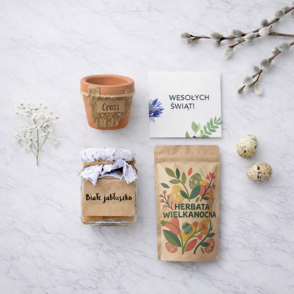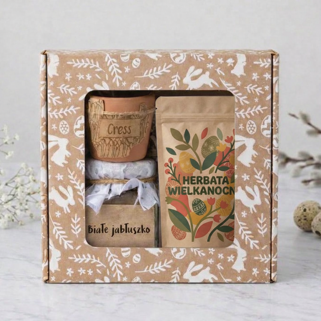 Starannie dobrane produkty tworzą wiosenny upominek o naturalnym charakterze. Całość zapakowana w estetyczne pudełko prezentowe z okienkiem – gotowe do wręczenia jako świąteczny prezent firmowy. Propozycja dla firm poszukujących eleganckiego zestawu prezentowego B2B dla pracowników, klientów lub partnerów biznesowych.